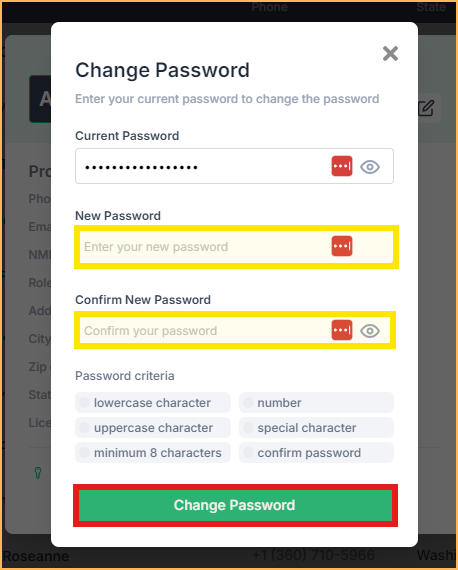 - Confirm New Password