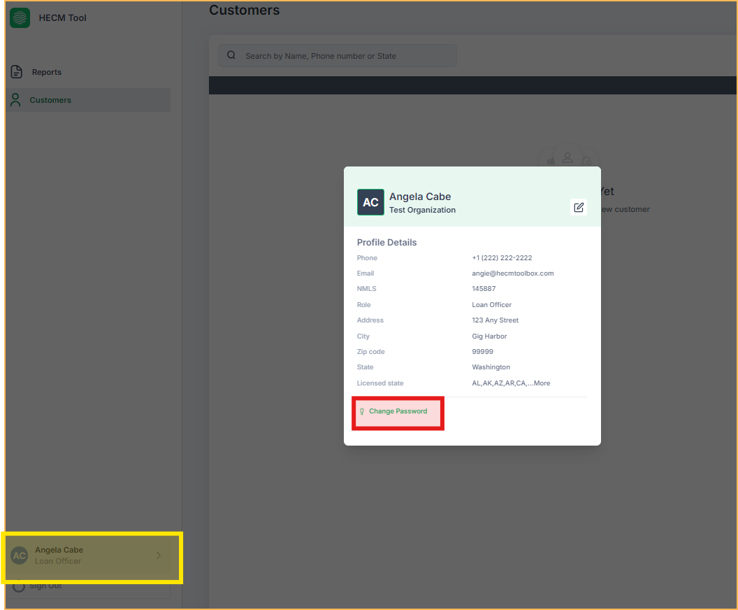 - Click on Change Password